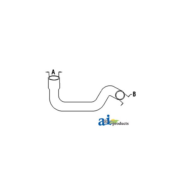 Radiator Hose, Lower, Dim A (1): A - 1.625", Dim B (2): B - 1.125", Web Notes: (NOTE: replaces 33-0031933), Web Notes: larger side. This radiator hose fits the White / Oliver / Minneapolis Moline Tractor 2-45 and 2-55., Web Notes: New lower radiator hose with an inside diameter of 1.125" on the smaller side and 1.625" on the