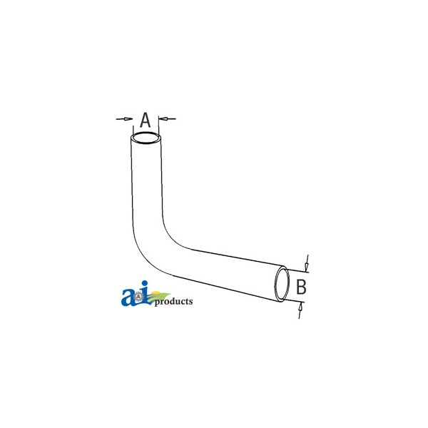 Radiator Hose, Lower, Dim A (1): A - 1.500" ID, Dim B (2): B - 1.562" ID, Web Notes: side. This radiator hose fits multiple Massey Ferguson Tractor models. (NOTE: replaces ATJ3178,, Web Notes: 02310010, 1860374M1), Web Notes: New lower radiator hose with an inside diameter of 1.5" on the smaller side and 1.562" on the larger