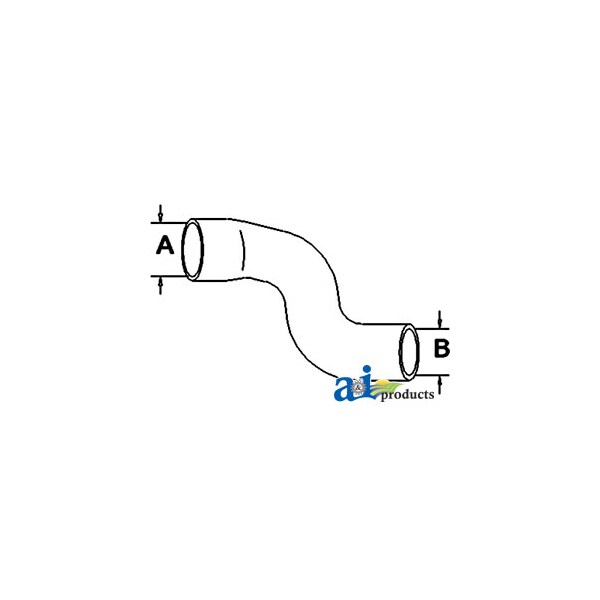 Radiator Hose, Lower, Dim A (1): A - 2.500", Dim B (2): B - 2.250", Web Notes: New lower radiator hose with an inside diameter of 2.25" on the smaller side and 2.5" on the larger, Web Notes: side. This radiator hose fits multiple Case-IH Tractor models.