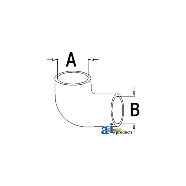 Radiator Hose, Lower, Dim A (1): A - 2.375", Dim B (2): B - 2.000", Web Notes: New lower radiator hose with an inside diameter of 2" on the smaller side and 2.375" on the larger, Web Notes: side. This radiator hose fits multiple White / Oliver / Minneapolis Moline Tractor models.