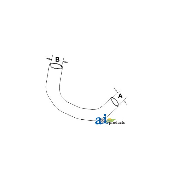Radiator Hose, Lower, Dim A (1): A - 1.312" I.D., Dim B (2): B - 1.375" I.D., Web Notes: larger side. This radiator hose fits the Case-IH Compact Tractor 244 and 254., Web Notes: New lower radiator hose with an inside diameter of 1.312" on the smaller side and 1.375" on the