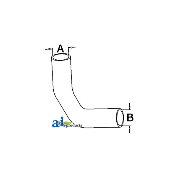 Radiator Hose, Lower, Dim A (1): A - 1.500", Dim B (2): B - 1.375", Web Notes: side. This radiator hose fits the Allis-Chalmers Tractor 160., Web Notes: New lower radiator hose with an inside diameter of 1.375" on the smaller side and 1.5" on the larger