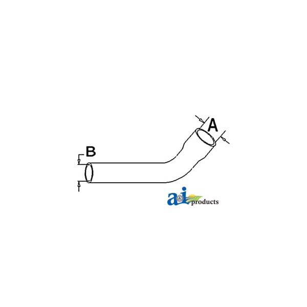 Radiator Hose, Upper, Dim A (1): A - 1.437", Dim B (2): B - 1.340", Web Notes: larger side. This radiator hose fits the Allis-Chalmers Tractor 6140., Web Notes: New upper radiator hose with an inside diameter of 1.34" on the smaller side and 1.437" on the