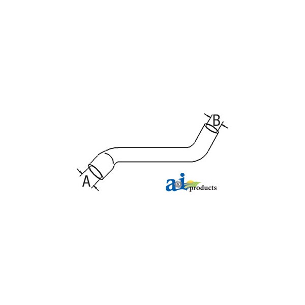 Radiator Hose, Upper, Dim A (1): A - 1.250", Dim B (2): B - 1.062", Web Notes: larger side. This radiator hose fits the Allis-Chalmers Compact Tractor 5220 (Synchro)., Web Notes: New upper radiator hose with an inside diameter of 1.062" on the smaller side and 1.25" on the