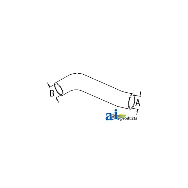 Radiator Hose, Upper, Dim A (1): A - 2.00", Dim B (2): B - 1.92", Web Notes: New upper radiator hose with an inside diameter of 1.92" on the smaller side and 2" on the larger, Web Notes: side. This radiator hose fits multiple John Deere Industrial / Construction models.