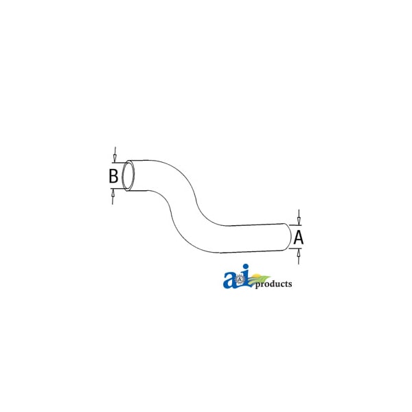 Radiator Hose, Upper, Dim A (1): A - 1.750" I.D., Dim B (2): B - 2.000" I.D., Web Notes: New upper radiator hose with an inside diameter of 1.75" on the smaller side and 2" on the larger, Web Notes: side. This radiator hose fits the Case-IH Tractor 3220 and 995 (with air conditioning).