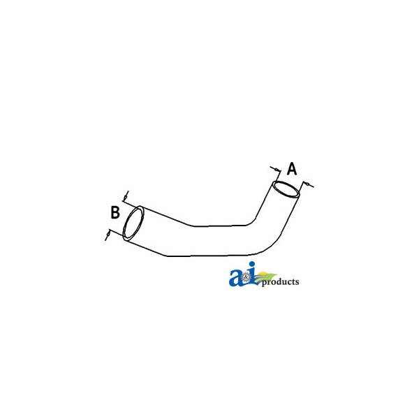 Radiator Hose, Upper, Dim A (1): A - 2.000" ID, Dim B (2): B - 2.500" ID, Web Notes: New upper radiator hose with an inside diameter of 2" on the smaller side and 2.5" on the larger, Web Notes: side. This radiator hose fits multiple John Deere Tractor models.