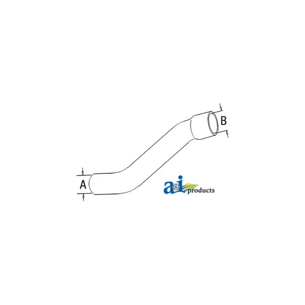 Radiator Hose, Upper, Dim A (1): A - 2.000" ID, Dim B (2): B - 2.500" ID, Web Notes: New upper radiator hose with an inside diameter of 2" on the smaller side and 2.5" on the larger, Web Notes: side. This radiator hose fits the John Deere Tractor 4430 (with or without air conditioning).