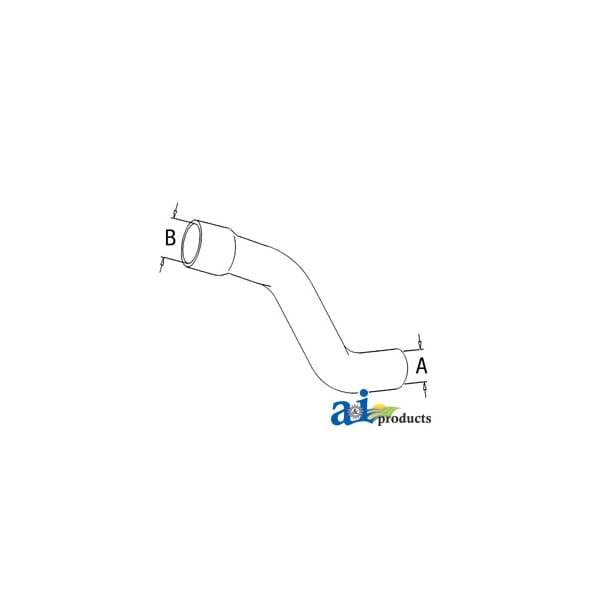 Radiator Hose, Upper, Dim A (1): A - 2.250" ID, Dim B (2): B - 2.500" ID, Web Notes: New upper radiator hose with an inside diameter of 2.25" on the smaller side and 2.5" on the larger, Web Notes: side. This radiator hose fits multiple John Deere Cotton Picker and Tractor models.
