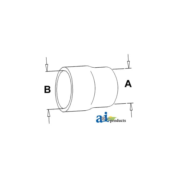 Radiator Hose, Upper, Dim A (1): A - 2.250" ID, Dim B (2): B - 2.500" ID, Web Notes: New upper radiator hose with an inside diameter of 2.25" on the smaller side and 2.5" on the larger, Web Notes: side. This radiator hose fits multiple John Deere Forage Harvester and Tractor models.