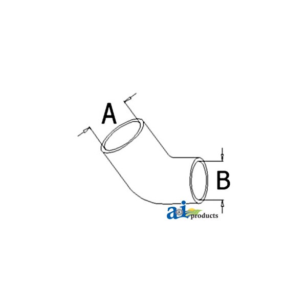 Radiator Hose, Upper, Dim A (1): A - 1.750", Dim B (2): B - 1.500", Web Notes: replaces 31-2900986), Web Notes: New upper radiator hose with an inside diameter of 1.5" on the smaller side and 1.75" on the larger, Web Notes: side. This radiator hose fits the White / Oliver / Minneapolis Moline Tractor 1465 and 1470. (NOTE: