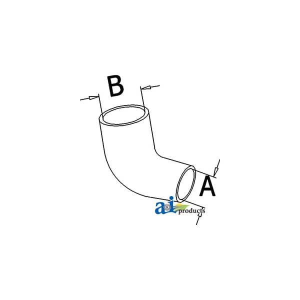 Radiator Hose, Upper, Dim A (1): A - 1.500" ID, Dim B (2): B - 2.000" ID, Web Notes: New upper radiator hose with an inside diameter of 1.5" on the smaller side and 2" on the larger, Web Notes: side. This radiator hose fits multiple John Deere Tractor models.