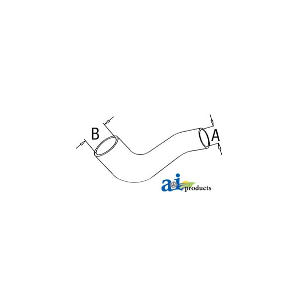 Radiator Hose, Upper, Dim A (1): A - 1.062" I.D., Dim B (2): B - 1.312" I.D., Web Notes: 9558->)., Web Notes: larger side. This radiator hose fits the Case-IH Tractor 274 (SN 9147->) and 284 (diesel, SN, Web Notes: New upper radiator hose with an inside diameter of 1.062" on the smaller side and 1.312" on the