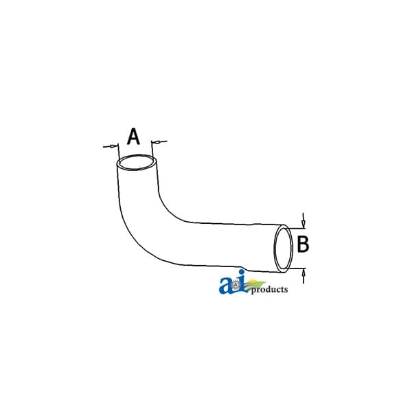 Radiator Hose, Upper, Dim A (1): A - 2.000" ID, Dim B (2): B - 2.200" ID, Web Notes: New upper radiator hose with an inside diameter of 2" on the smaller side and 2.2" on the larger, Web Notes: side. This radiator hose fits multiple John Deere Tractor models.