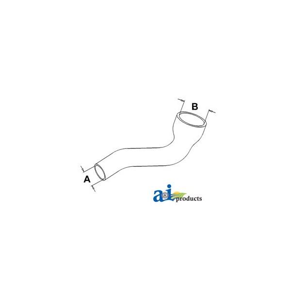 Radiator Hose, Upper, Dim A (1): A - 1.500" ID, Dim B (2): B - 2.000" ID, Web Notes: New upper radiator hose with an inside diameter of 1.5" on the smaller side and 2" on the larger, Web Notes: side. This radiator hose fits multiple John Deere Tractor models.