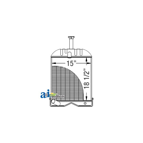 Radiator w/ 4.500" Neck, Dim A (1): Core Size: 15.000" Wide, Dim B (2): 18.500" High, Dim C (3): 3 Rows of Tubes, Dim D (4): 7 Fins per Inch, Web Notes: Each radiator has a stamped brass tank, undergoes a rigorous quality inspection, and is 100% leak, Web Notes: is 15" wide. This radiator fits multiple Massey Ferguson models., Web Notes: Our new radiator is designed and built to precise dimensional specifications to ensure an exact fit., Web Notes: tested. This radiator has 7 fins per inch and 3 rows of tubes. It is 18.5" tall and the core size
