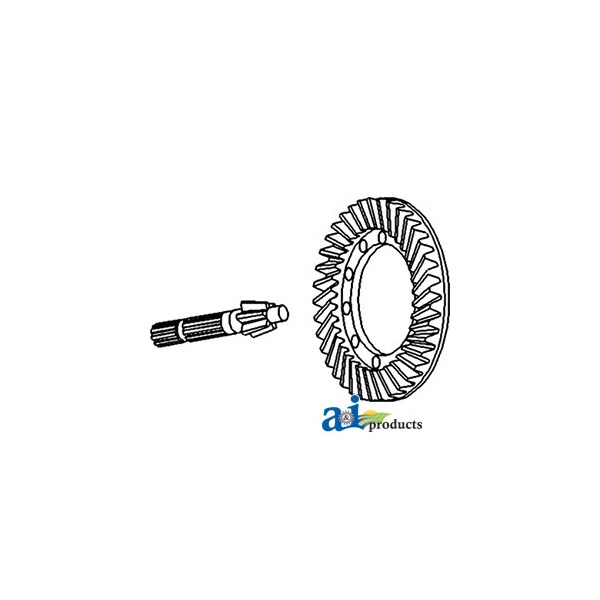 Ring & Pinion Set, Dim A (1): 37 Teeth Ring Gear, Dim B (2): 6 Teeth, 10 Spline Pinion Shaft, Dim C (3): 9.875" Long, Notes 2: Does not include hardware, Notes: 1660155M1 Spacer Currently N/A From A & I Or Agco., Notes: Will Work For Models 35, FE35 & 135 W/ 9 3/8" Shaft By Using Part # 1871924M1 Coupler from A & I &, Replaces: 1885317M92, 1889777M92