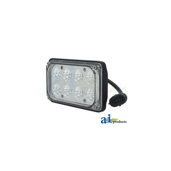 Sealed Beam, LED; Flood, Body Material: Die Cast Aluminum, Body Size: Width 4.8" (12.3 CM) X Height 3.0" (7.7 CM) X Depth 2.1" (5.3 CM), Body: Rectangle, Color Temperature: 6000K, Diode: (8) 5 Watt Cree Diodes, Draw: 3.33 Amps @ 12 Volts & 1.66 Amps @ 24 Volts (Watts / Volts = Amps), Lens: Polycarbonate, Light Pattern: Flood, Lumens Effective: 2000, Lumens Raw: 3000, Notes 2: Holland Skid Steers, Notes 2: Direct fit replacement LED light for the LH or RH front top of cab or rear work/reverse light on New, Notes 3: Operating Temperature: -40 ~ 140 Fahrenheit /-40 ~ 60 Celsius, Notes: Direct fit replacement LED light for the LH or RH rear work/reverse light on Bobcat Skid Steers, Volt: 10-30 Volt DC
