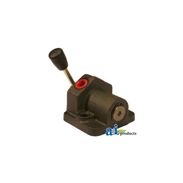 Selector Valve, Dim A (1): Provides a positive change over from tractor hyd. to external service., Dim B (2): Does away w/ need to fix the tractor lift arm in the lower position when external service is in use., Dim C (3): simply by operating the valve., Dim C (3): The 3 point linkage of the tractor can be free for use while the external service remains connected, Dim D (4): Services lift arms plus three external ports w/ return going back to rear end. Ports can only be, Dim D (4): used one at a time., Notes 2: located on the hydraulic lift cover, Notes 2: This 3 way selecter valve is designed to fit in place of 180908M1 interface cover plate which is, Notes: Converts MF hydraulic to external service (valve has 3/8" BSP thread in pressure ports), Port Size: 3/8" BSP