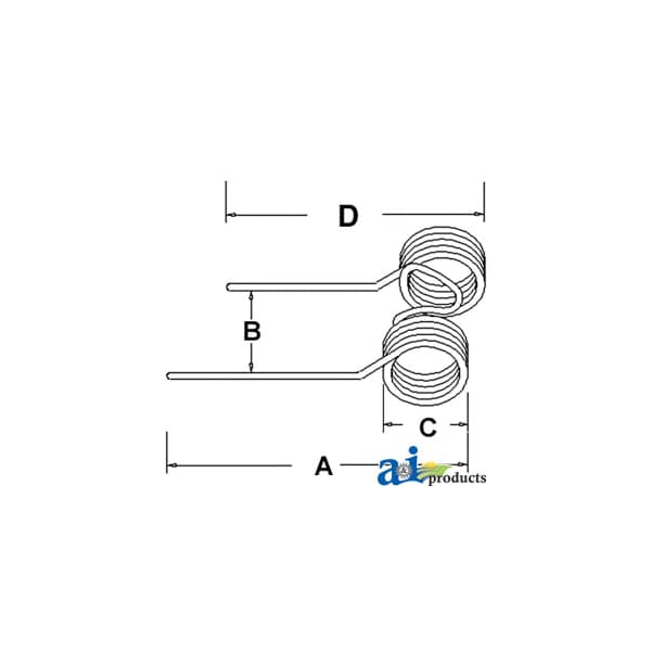 Tedder Tooth (RH), : gap is 4.37". Fits Zweeger hay tedders., Dim A (1): 16.50", Dim B (2): 4.37", Dim C (3): 1.65", Dim D (4): 15.43", Dim H (8): 20, Web Notes: New tedder tooth. The long tine length is 16.50", short tine s 15.43". Coil O.D. is 1.65" and tine