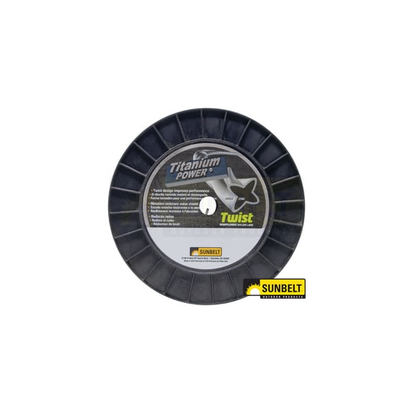 Titanium Power Trimmer Line, .105" twist, Diameter: .105", Notes 2: Developed through aerodynamic testing the Twist Line has outstanding air penetration reducing noise, Notes 2: pollution without compromising on performance., Notes 3: Noise isn't all that's reduced. With its concentrated strength, the Twist Titanium Power Line, Notes 3: requires less engine acceleration., Notes 4: on fuel costs and general wear and tear, increasing the life span of your trimmer., Notes 4: This makes it easier to cut grass, so your machine doesn't have to work at full power. You can save, Package: 3 lb. spool