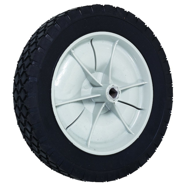 WHEEL-DECK, 10X1.75, DIAMOND,PLAST-GRAY, Bearing Type: Spline Drive Bushing, Center Hole: 7/16" x 9/16", Hub: 1-5/8", Offset Hub Type, Style: Deck Wheel, Tread Pattern: Diamond, Wheel Color: Gray