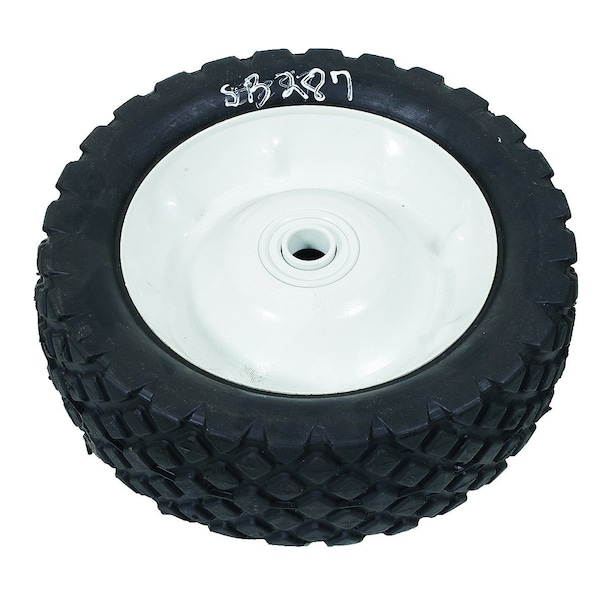 WHEEL-DECK, 8X2.75, DIAMOND, STEEL-WHITE, Center Hole: 1/2", Hub: 2-1/2", Offset Hub Type, Tread Pattern: Diamond, Bearing Type: Ball, Style: Universal Steel Deck Wheel, Wheel Color: White