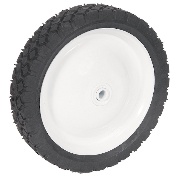 WHEEL-DECK, 9X1.75, DIAMOND, STEEL-WHITE, Center Hole: 7/16", Hub: 1-5/8", Offset Hub Type, Tread Pattern: Diamond, Bearing Type: Ball, Style: Universal Steel Deck Wheel, Wheel Color: White
