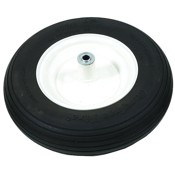 WHEEL-RIBBED, 4.8X4X8, SOLID, WHITE, Center Hole: 5/8", Hub: 6", Centered Hub Type, Tread Pattern: Ribbed, Bearing Type: Ball, Style: Wheel Barrow, Wheel Color: White, Notes: Universal wheel barrow