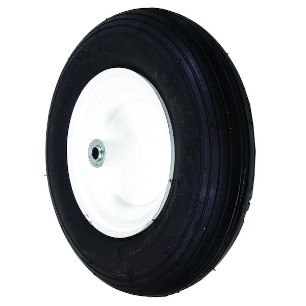 WHEEL-RIBBED, 4.8X4X8, WHITE, FP, Center Hole: 5/8", Hub: 6", Centered Hub Type, Tread Pattern: Ribbed, Bearing Type: Ball, Style: Wheel Barrow, Wheel Color: Black, Notes: Universal wheel barrow, Notes 2: 5/8" Bearing, Notes 3: Use B1SB872 for Pneumatic Equivalent
