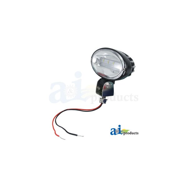 Work Lamp, LED; Flood, Body Material: Die Cast Aluminum, Body: Oval, Color Temperature: 6000K, Dimensions: Width 6.69" (17 CM) X Height 3.22" (8.2 CM) X Depth 3.11" (7.9 CM), Diode: (8) 5 Watt Cree Diodes, Draw: 3.33 Amps @ 12 Volts & 1.66 Amps @ 24 Volts (Watts / Volts = Amps), Lens: Polycarbonate, Light Pattern: Flood, Lumens Effective: 1780, Lumens Raw: 2400, Mounting: Mount bracket with hollow mounting stud to run power wires through, Replaces: RE269638, RE269640, Volt: 10-30 Volt DC