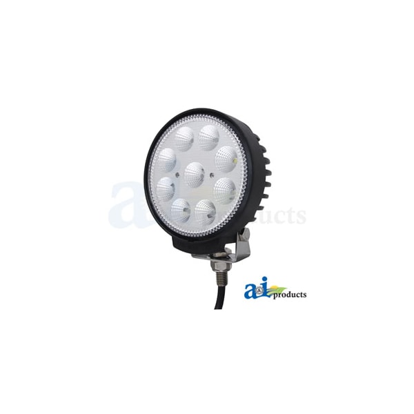 Work Lamp, LED, Flood, Round, Body Material: Die Cast Aluminum, Body: Round, Color Temperature: 6000K, Dimensions: Diameter 4.7" (12 CM) , Depth 2.6" (6.5 CM), Diode: (9) 3 Watt Cree Diodes, Draw: 2.25 Amps @ 12 Volts &1.125 Amps @ 24 Volts (Watts / Volts = Amps), Lens: Polycarbonate, Light Pattern: Flood, Lumens Effective: 2286, Lumens Raw: 2600, Mounting: Hollow mounting stud to run power wires through, Notes 2: Operating Temperature: -40 ~ 140 F, Volt: 10-30 Volt DC