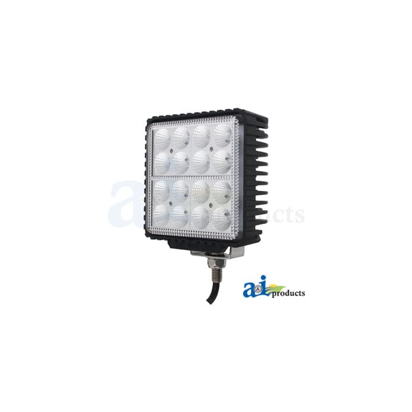 Work Lamp, LED, Flood, Square, Body Material: Die Cast Aluminum, Body: Square, Color Temperature: 6000K, Dimensions: Width 5.1" (13 CM) X Height 5.1" (13 CM) X Depth 2.5" (6.3 CM), Diode: (16) 3 Watt Cree Diodes, Draw: 4 Amps @ 12 Volts & 2 Amps @ 24 Volts (Watts / Volts = Amps), Lens: Polycarbonate, Light Pattern: Flood, Lumens Effective: 4160, Lumens Raw: 4800, Mounting: Hollow mounting stud to run power wires through, Notes 2: Operating Temperature: -40 ~ 140 Fahrenheit /-40 ~ 60 Celsius, Volt: 10-30 Volt DC