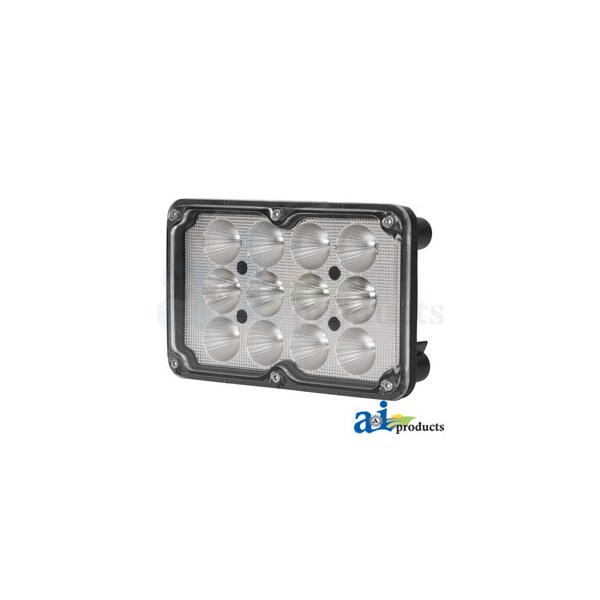 Work Lamp, LED, Hi / Low, Rectangle, Body: Rectangle, Dimensions: 6.50" (16.5cm) Width X 4.15" (10.5cm) Height X 2.45" (6.2cm) Depth, Diode: (12) 5 Watt Cree Diodes, Draw: 5 Amps @ 12 Volts & 2.5 Amps @ 24 Volts (Watts / Volts = Amps), Includes: Built in premium EMC noise suppression filter, Lens: Polycarbonate, Light Pattern: Hi / Low, Lumens Effective: 3,650 / 1,150, Lumens Raw: 4,800 / 2,000, Notes 2: Operating Temperature: -40 ~ 140 Fahrenheit /-40 ~ 60 Celsius, Notes: Replaces front hood light, Replaces: RE135400, RE137879, RE58638, RE22573, RE195219, RE225730, Volt: 10-30 Volt DC