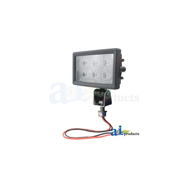 Work Lamp, LED; Rectangle, Flood 3" X 5, Body Material: Die Cast Aluminum, Body: Rectangle, Color Temperature: 6000K, Dimensions: Width 5.67" (14.4cm) X Height 3.3" (8.4cm) X Depth 2.4" (6.1cm), Diode: (6) 5 Watt Cree Diodes, Draw: 2.50 Amps @ 12 Volts & 1.25 Amps @ 24 Volts (Watts / Volts = Amps), Includes: Mount brackets & hardware, Lens: Polycarbonate, Light Pattern: Flood, Lumens Effective: 1325, Lumens Raw: 1920, Notes 2: For power, use existing tractor harness & plug into lights or use included power harness adapter, Notes 3: Add lights without overloading electrical system, increase battery and alternator life, Notes 4: Light provided is similar to sunlight, reduces eyestrain, Notes: for other applications, Notes: Front flood light replacement for John Deere 8000, 8010 & 9000 Series tractors or a universal fit, Replaces: RE154898 & RE342545, Supply Voltage: 10-30 Volt DC