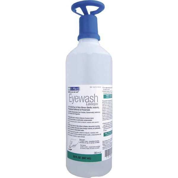 Single Use Eyewash Bottle, Bottle Size 32 oz, Shelf Life 4.5 yr, Standards FDA Approved