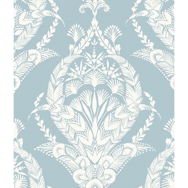 Arlie Light Blue Botanical Damask Wallpaper