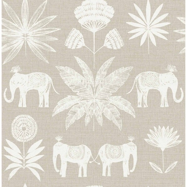 Bazaar Light Grey Elephant Oasis Wallpaper