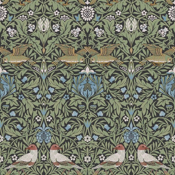 Bird Multicolor Floral Thicket Wallpaper
