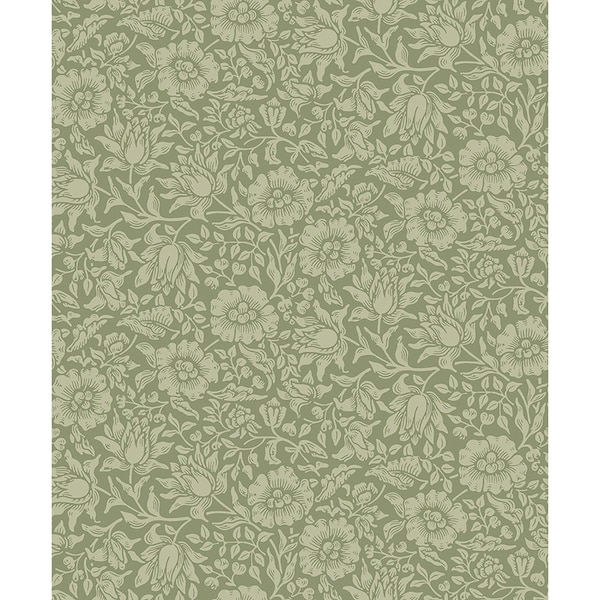 Mallow Green Floral Vine Wallpaper
