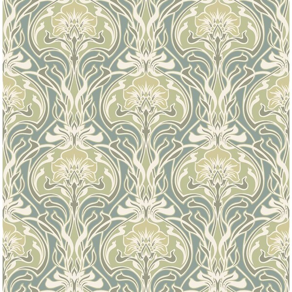 Mucha Teal Botanical Ogee Wallpaper