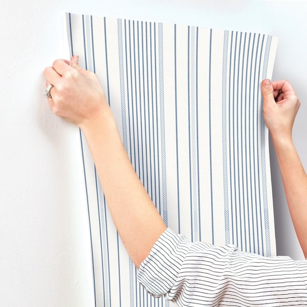 Navarres Stripe Blue Faux Linen Wallpaper