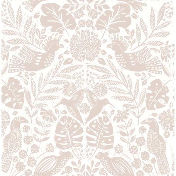 Nestle Pink Bird Block Print Wallpaper