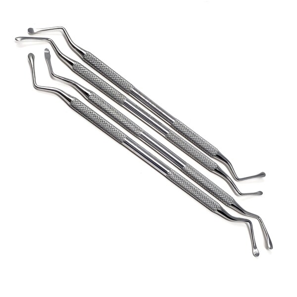 4 Pcs DENTAL CURETTES SET-Designed for handling curettage, cyst removal and tooth socket debridement.AFFORDABLE QUALITY MATERIALS-Made of high quality stainless steel for optimum utility, easy to sterilize, and fully autoclavable. Polished finish for aesthetic & rust corrosion resistance resulting from superior craftsmanship.KNURLED HOLDING SURFACE-Holding surface is knurled and textured for a firm grip even with wet hands. The corrugated handle design offers smooth maneuvering, giving you more control and access to tight areas. Ergonomically designed handle helps to promote neutral wrist posture when working on hard-to-reach areas.SPECIALIZED ORTHOPEDIC TOOL- commonly use for scraping fibrous and bony tissue from bone surfaces, or to remove debris and diseased bone to clean the surgical field.DOUBLE ENDED ANGLED SHANKS-Versatile Double-Ended Design for scraping bone with ease. Solid angled shanks for reaching narrow cavities.Package Includes:1 Pcs Lucas 85 R/L Curette Medium 2.5mm Spoon Shaped Blades1 Pcs Lucas 86 R/L Curette Medium 2.8mm Spoon Shaped Blades1 Pcs Lucas 87 R/L Curette Large 3.5mm Spoon Shaped Blades1 Pcs Lucas 88 R/L Curette Large 4.0mm Spoon Shaped Blades