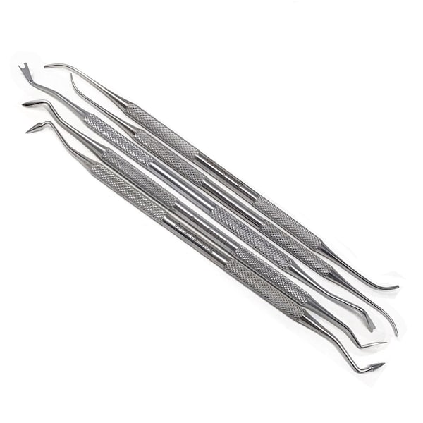 5 Pcs DENTAL WAX CARVERS SET-Designed to use as part of restorative procedures to carve anatomical features and remove access materials.AFFORDABLE QUALITY MATERIALS-Made of high quality stainless steel for optimum utility, easy to sterilize, and fully autoclavable. Polished finish for aesthetic & rust corrosion resistance resulting from superior craftsmanship.KNURLED HOLDING SURFACE-Holding surface is knurled and textured for a firm grip even with wet hands. The corrugated handle design offers smooth maneuvering, giving you more control and access to tight areas. Ergonomically designed handle helps to promote neutral wrist posture when working on hard-to-reach areas.SPECIALIZED ORTHOPEDIC TOOL- Manufactured with curved tapered tips to smoothly flow on molten wax or situate the anti-irritation wax for braces. DOUBLE ENDED ENDS-Double-Ended working ends provide different shapes for waxing procedures and techniques.