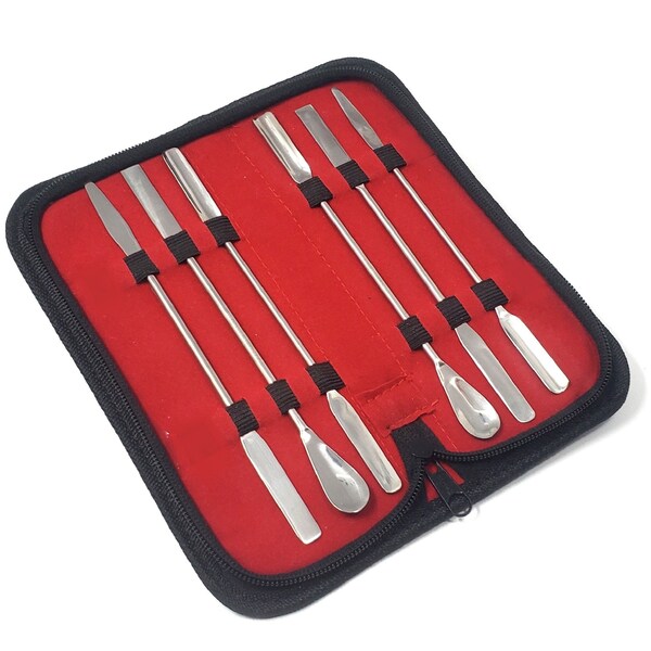6 Pc Stainless Steel Lab Spatula Micro Sampling Scoop Double Ended Mixing w/Case