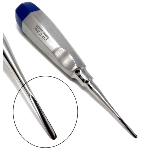 Dental Luxating Elevator Curved 2mm, Blue Handle