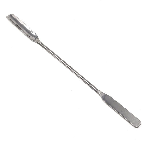 Sturdy & Durable-Made from premium grade stainless steel, promising durability, long life span, and anti corrosion properties. Manufactured with a non stick surface and smooth finish. Easy to clean and sterilize for repetitive use.2-in-1 Versatile Design-Micro spoons spatulas has two different end shapes, offering increased versatility. Measure with the spoon end, divide or separate materials with the flat square end, stir from the round end, and scrap from the scoop end to name a few options. Long Narrow Handle-Features long handle for retrieving materials from bottles, beakers, crucibles, and jars. Easy to scoop small quantities from deeper bottles and jars with small openings. Common Applications-Stir in deep containers to mix substances. Work with miniscule amounts of chemicals/powder. Handy for breaking up, scraping off, picking up and transferring solids, granules, oils, pastes or other compounds.Prevents Cross Contamination-Extensively used in labs to facilitate cross contamination free sampling. Unreactive to boiling water, bases, and most solvents.