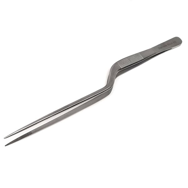Offset Narrow-Tip Micro Serrated Forceps, 8 inch Stainless Steel Tweezers