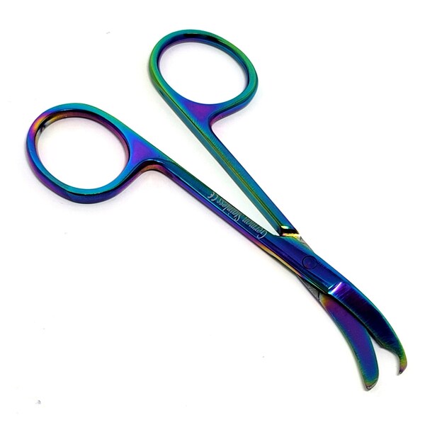 One Hook Tip These snips feature a hook in the front of the blade that slides under sutures to slightly lift them before cutting. The hook also holds the threads so it does not slip off the blade of the scissors prior to cutting.Sleek Delicate Design Lightweight ergonomic design reduces hand fatigue during repetitive tasks. Enables a high degree of precision and flexibility while conducting delicate procedures.Steady Grip The finger rings are smooth and comfortable to hold with no burrs that could hurt the hand. Reusable Multipurpose Tool This uniquely colored shears will stand out among other ordinary silver-colored cutting tools at your workplace. Sturdy & Functional Made of high-quality stainless steel, which is durable and sturdy with anti-rust and anti-corrosion properties. Manufactured from AISI 420 stainless steel, the product conforms to ISO 9001, ISO 13485, FDA, and other Quality Standards. Shipped in retail gift packaging.